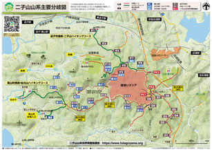 神奈川県東部三浦半島の付け根部分、相模湾と東京湾に挟まれた葉山町、逗子市、横須賀市にまたがる660haの丘陵地帯のことを指します。ほぼ中央に207.8メートルの二子山、東側に矢落山(乳頭山)、茅塚、畠山、西側にはソッカ、仙元山、北西側に阿部倉山の山々が連なります。